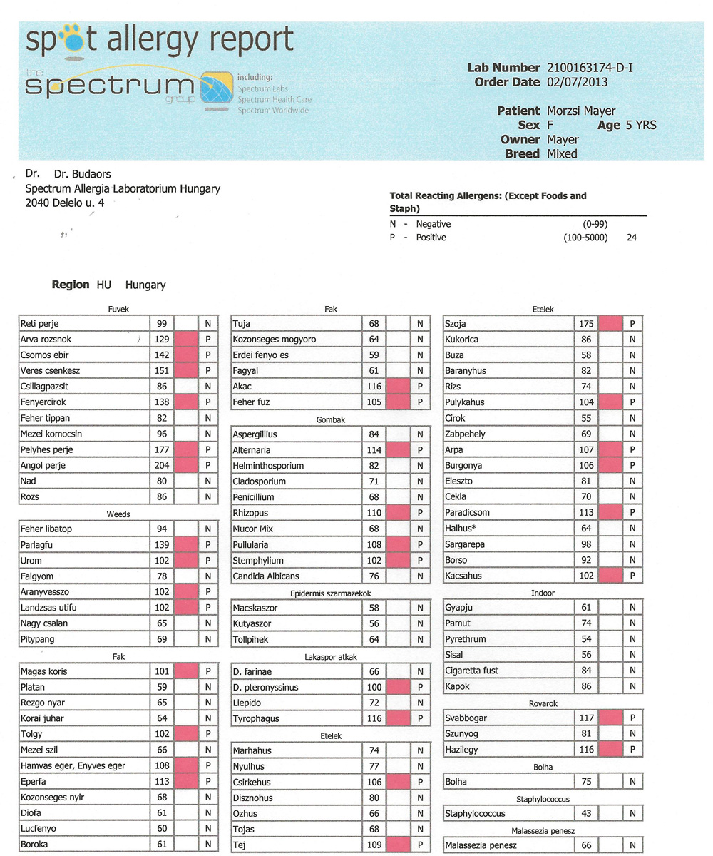 SPOT PLATINUM allergia teszt ára (eb, macska, ló) 91 allergénre: árjegyzékben (2013)